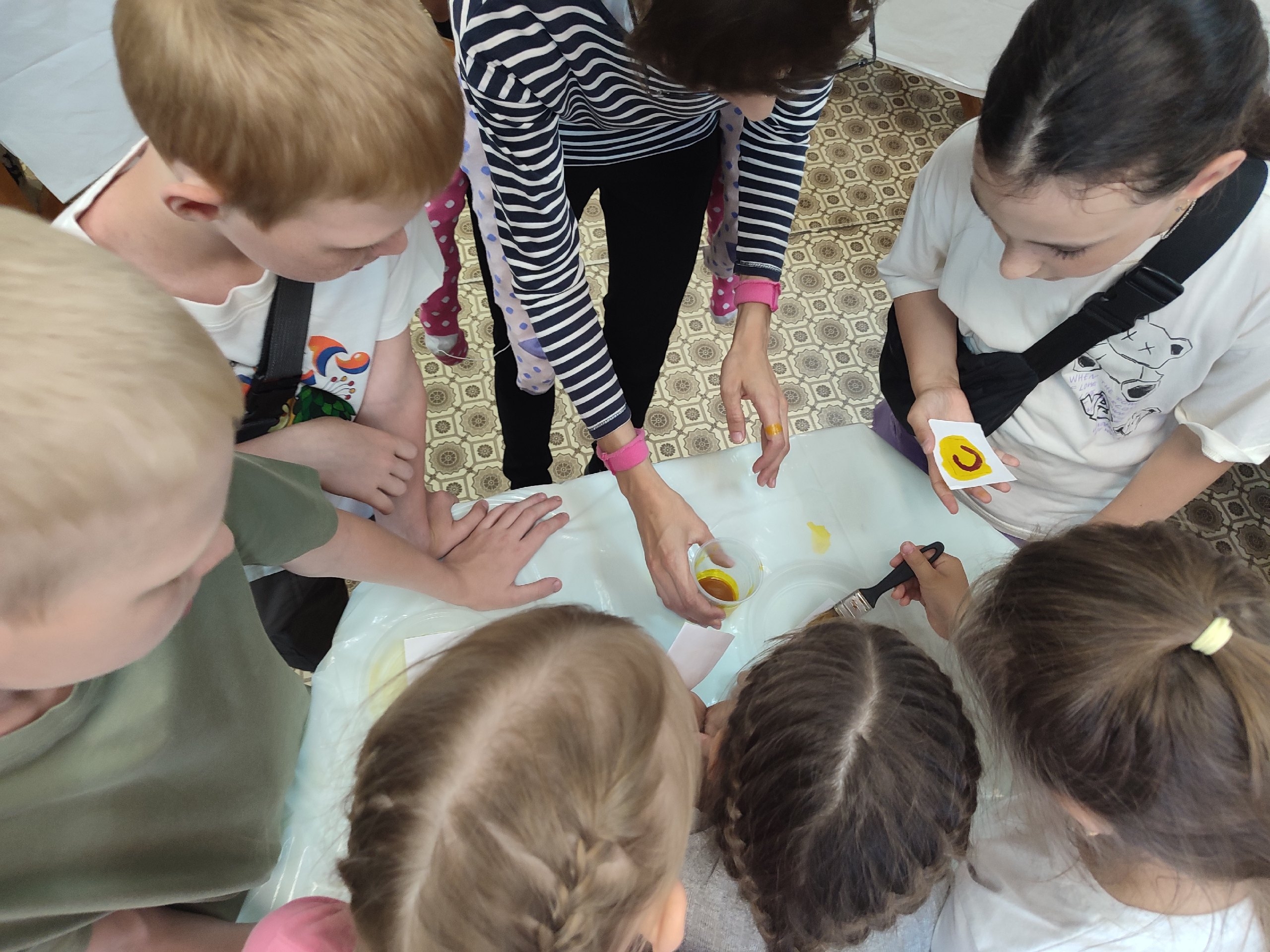 Первым сюрпризом стал квест «Проделки Озорного-Книгового». Он прошёл 3 июля сразу во всех 4-х (!) залах библиотеки. Ребятам пришлось несколько раз подняться и спуститься с этажа на этаж, отвечать на вопросы книжной викторины, разгадать секретный шифр, пройти полосу препятствий, проявить невидимые чернила… И сделать портрет виновника переполоха – загадочного библиотечного существа. Книжные закладки с весёлой рожицей Озорного-Книгового ребята забрали домой. Пусть он станет их добрым талисманчиком, помогающим полюбить чтение!
